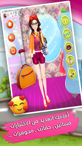 الرحلة طويلة حقا وهي في حيرة من أمرها كيف يمكنها ان تبدو جميلة طوال الرحلة ساعدها الان في اختيار الملابس والازياء المناسبة لهذه الرحلة الطويلة سوف تجيدين داخل اللعبة مجموعة من الادوات والاكسسورات الضرورية للقيام بذالك