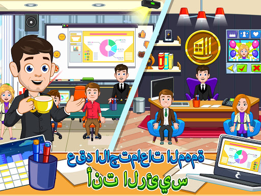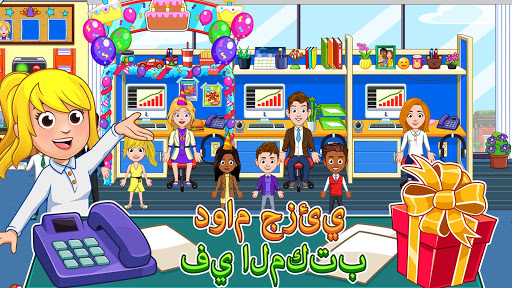 هل تريدون اكتشاف ما يبدو عليه الأمر عندما تكون شخصًا بالغًا وتعمل في مكتب؟ My City : المكتب هو المكان الذي تستطيع فيه ابتكار مغامرتك الخاصة في المكتب. في وجود منزل خاص بالرئيس وأربعة مواقع رائعة للعمل فيها، لم يكن صباح يوم الاثنين بهذه الإثارة أبدًا! اعقد الاجتماعات المهمة وحدد من سيحصل على جائزة موظف الشهر؟ هل ترغب في العمل في محطة التلفاز أو ربما في صالة الألعاب الرياضية؟ كل شيء ممكن في اللعبة الجديدة My City : المكتب!