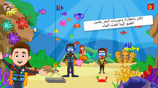 لنذهب للغوص! - تأكد من أن تعرج على المتجر وترتدي معدات الغوص. سوف تجد تحت الماء حورية بحر تغني، وصندوق الكنز المفقود ورؤوس الأعماق الثلاثة! استخدم الرافعة لإيجاد ورفع الكنز من قاع البحر!