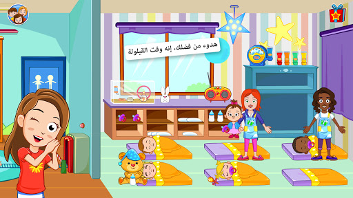 My Town الجديدة : الرعاية النهارية هو المكان الذي يمكن أن تعلب فيه وتأخذ 6 أطفال ظرفاء إلى مركز الرعاية النهارية. ضعهم في فراشهم، والبسهم من أجل وقت اللعب في الفناء واستمتع بـ4 مواسم طقس!