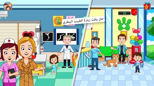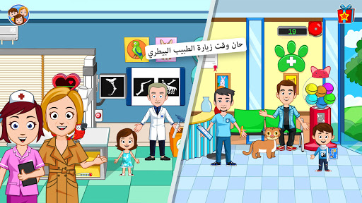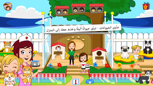 لعبة My Town: الحيوانات الأليفة بها كل شيء تحتاج إليه للعناية بحيوانك الأليف. العب مع القطط والكلاب والطيور الهامستر. تخيّل نفسك تتبنى كلبًا، وتُلبسه، وتستكشف جميع الأماكن والبقاع المهمة الخفية. جرّب تمشية كلبك في المناطق الرملية بالحدائق العامة، ولكن لا تنس تنظيف فضلاته. اغسل حيواناتك، وعالجهم عند إصابتهم في عيادة الطبيب البيطري. استكشف جميع الأماكن، واخترع قصتك الخاصة بك في كل مرة تلعب فيها.