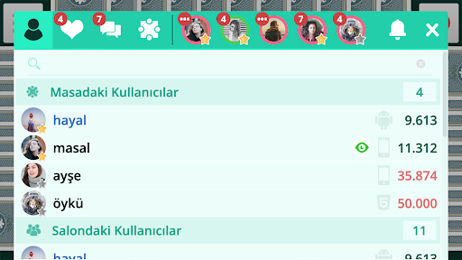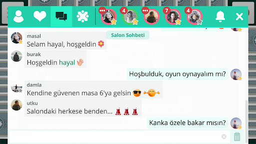 يمكنك مقابلة أشخاص جدد ، والدردشة ، وتكوين صداقات.يمكنك لعب الأوراق مع أصدقائك.غرفة المعيشة ، الطاولة والمحادثات الخاصة في متناول اليد على الفور.يمكنك تخصيص عضويتك من خلال الخدمات المتميزة ، قد تكون مختلفًا.لا تحصل على ميزات منفصلة وفول السوداني لكل لعبة.