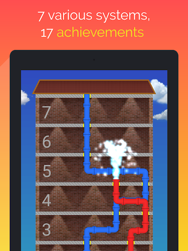 في مجال اللعب من 120 عنصر تحتاج إلى إنشاء خط أنابيب يعمل في إعدادات ألعاب مختلفة تجمع تدريجيا جميع أنظمة المنزل. فقط قم بتدوير الأنابيب المختلفة عن طريق لمسها وربطها عناصر الاتصال. عدد التحركات غير محدود ولكن المكافآت لا تكسب نفسها! أخطاء أقل - المزيد من النجوم والعملات المعدنية التي يمكنك استخدامها لفتح الطرود مع أنظمة جديدة تماما: الماء البارد الساخن والصرف الصحي والكهرباء والتهوية والغاز وشبكة الكمبيوتر!
