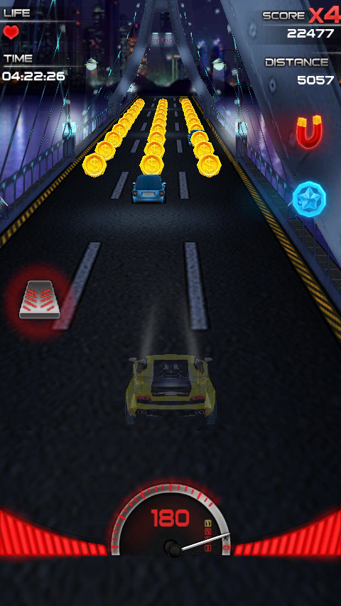 Night Racing 3D is a racing game that has very high quality in game’s graphics and playability. It is very easy to play. Players use gravity sensor to control the car to avoid other cars.
