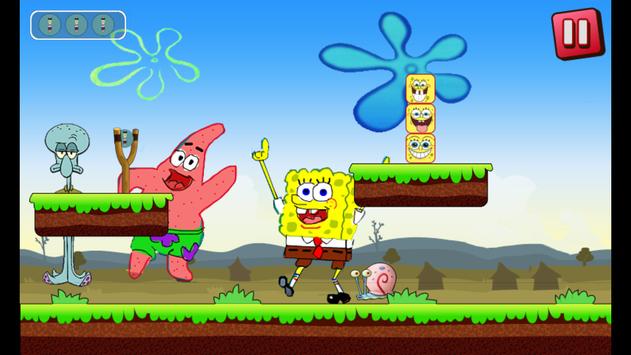 You must reach the end of each level and get the maximum score, help the angry super spongy and defeat the enemies like the bubble and the square monster on the first 4 levels, at the final stage you will confront spong Bob the BigBoss monster. Your angry hero super sponge can shoot these enemies using Easter eggs.
