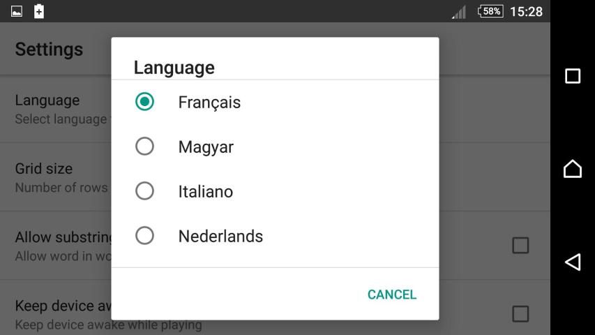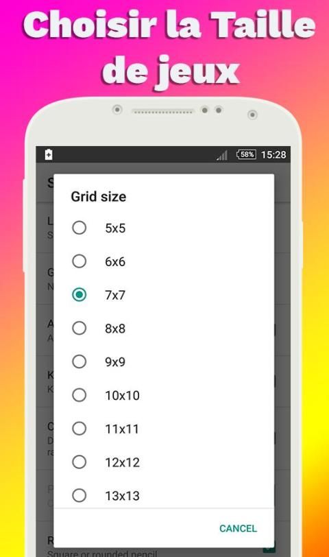 مع هذه غات متعددة وحجم يمكنك اختيار اللغة والحجم الذي يناسبك والبدء في اللعب والبحث عن الكلمات ميليس Fléchés
