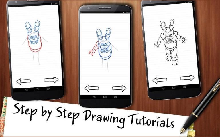 مجرد تكرار، ما وضعت بالفعل من قبل فنانينا وسوف تفاجأ عندما ترى النتيجة. سوف يكون الرسم تماما. يحتوي كل درس رسم حوالي 10 "خطوات" ولكل واحد منهم يأخذك إلى استكمال المثالي الخاص بك 5 ليالي رسم. رسم في أي مكان مناسب، عندما تريد. هو تطبيق متاح للتحميل بنقرة واحدة، وحتى يمكن أن تعمل إذا كنت حاليا! الرسومات النهائية التي يمكن أن تنقذ إلى الهاتف أو الجهاز اللوحي. تدهش أصدقائك مع المهارات الجديدة الخاصة بك إذا كنت تريد أن تتعلم كيفية رسم الوحش وفريدي لطيفة تماما، ونحن سوف يعلمك.