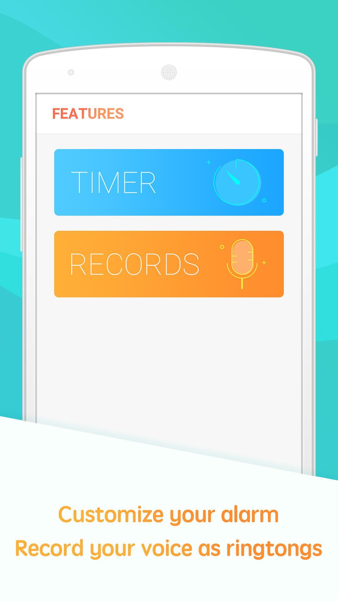 1.Default alarm support custom wallpaper, wake up with your admire picture!
