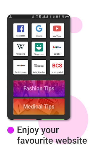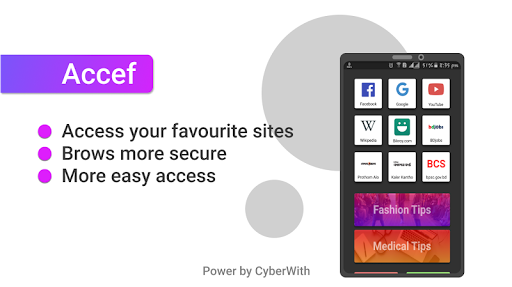Accef এমন একটি এ্যাপ যাতে আপনি আপনার নিত্য দিনের কিছু প্রয়োজনীয় ওয়েবসাইট ব্যবহার করতে পারবেন। এই এ্যাপটির ডেভেলপাররা আপনার কোনো প্রকার ডারা সংরক্ষণ করে না। এতে করে আপনি পাচ্ছেন আরো বেশি সুরক্ষা।