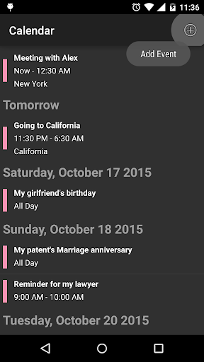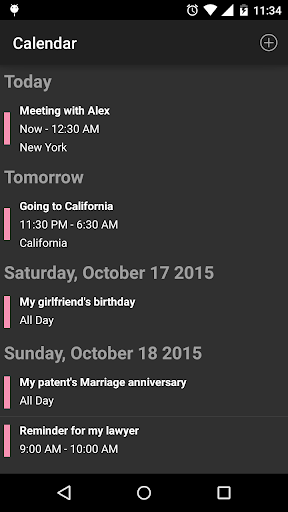 ● All events including Events, Birthdays, Holidays listing from all calendars of android device