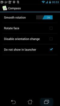 It provides magnetic compass screen. It can be run as a standalone application. If used as a plugin it requires Androzic version 1.7 or higher. Launcher icon can be disabled.