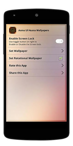 Simply download this app from Google Play Store and enable the screen which allows this app to set your selected wallpapers. Then tap on the Set Wallpapers button and select one of the Asma-ul-Husna and tap on set wallpaper button at the top of the screen. The settings of his app allow you to enable the lock screen for wallpapers and there’s an option to set the wallpaper in the rotation.