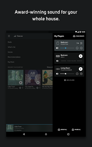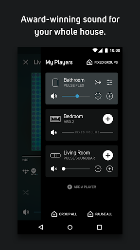 each প্রতিটি ঘরে একই সাথে বিভিন্ন সংগীত খেলুন, বা আপনার বাড়ির প্রতিটি ব্লুস-সক্ষম স্পিকার এবং প্লেয়ারের জন্য নিখুঁত সিঙ্কে একটি প্রিয় স্ট্রিম করুন।