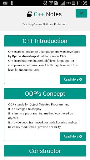 I am representing an Android Application name C . Basically i have created this application for the students, who are pursuing the computer course related to computer application field and purpose of this application is to make them clear about all the basic concept of this field.