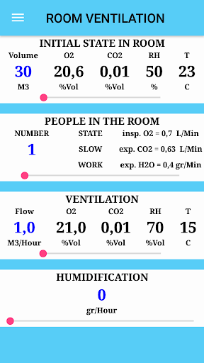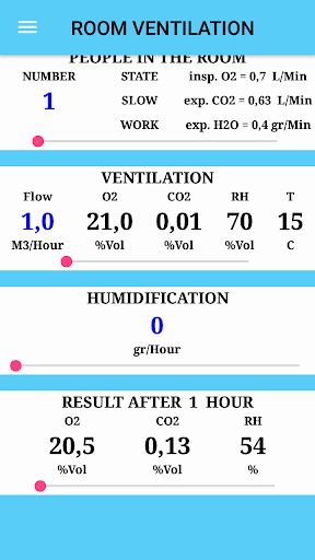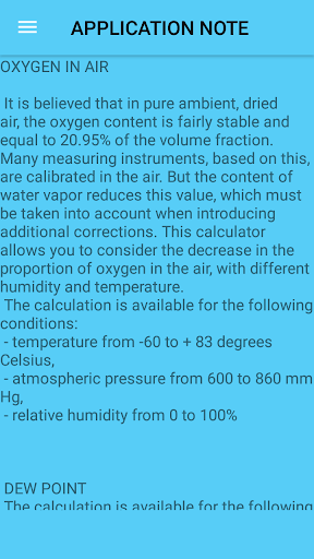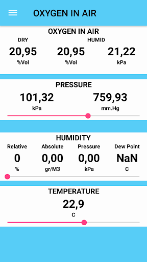 The application calculates the oxygen content in the air, taking into account humidity and temperature.