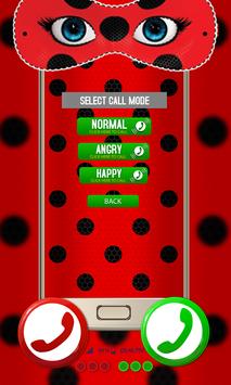 - select your mode of fake calling: there are three ladybug toys fake call modes in this fun girls game, just like if you had three wiches. The Fist wish from the miraculous land is the normal mode, the second wish is a happy fake call from ladybug simulate your party of birthday ladybug , the last one is a mode that heroes ladybug are too angry when meets a ladybug noir.