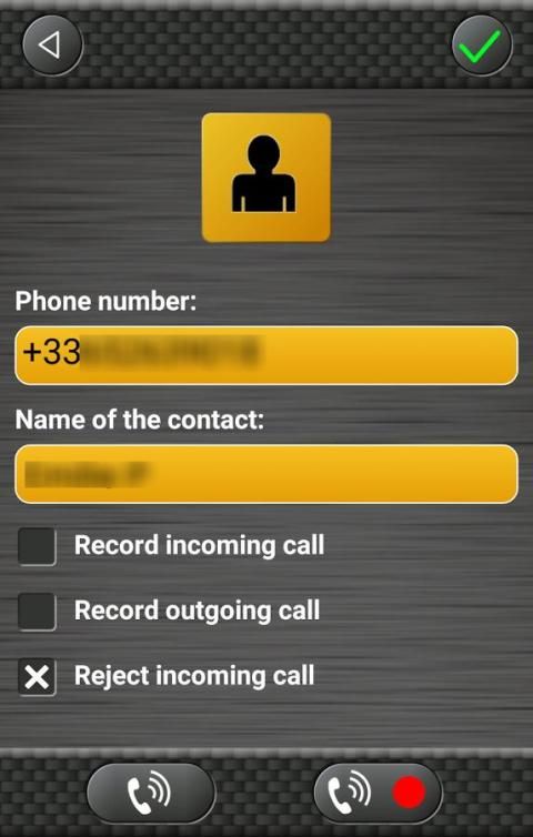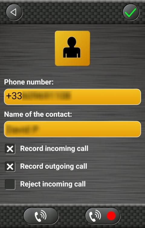 1) Define for which phone contact you wish to record the phone calls (incoming and outgoing).