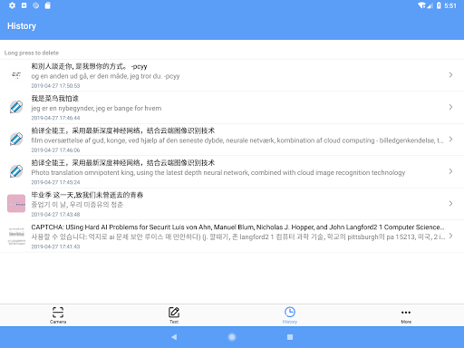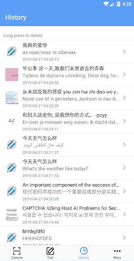 Cam Translate, mobile camera scan translator, uses the latest in-depth neural network, combined with cloud image recognition technology, to recognize text in images with high accuracy and to translate texts in multiple languages.