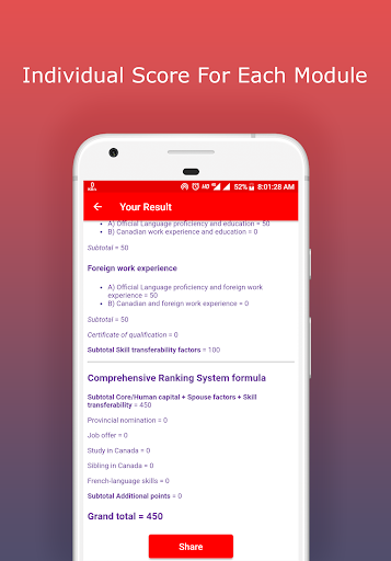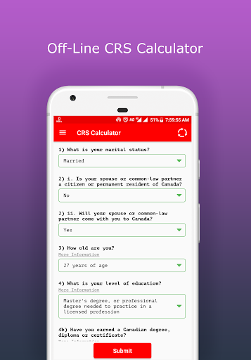 Canada Immigration Tool is an excellent application to calculate Comprehensive Ranking System (CRS) score off-line for Canada express entry and share each module score with grand total. Now, You can check your eligibility for Canada