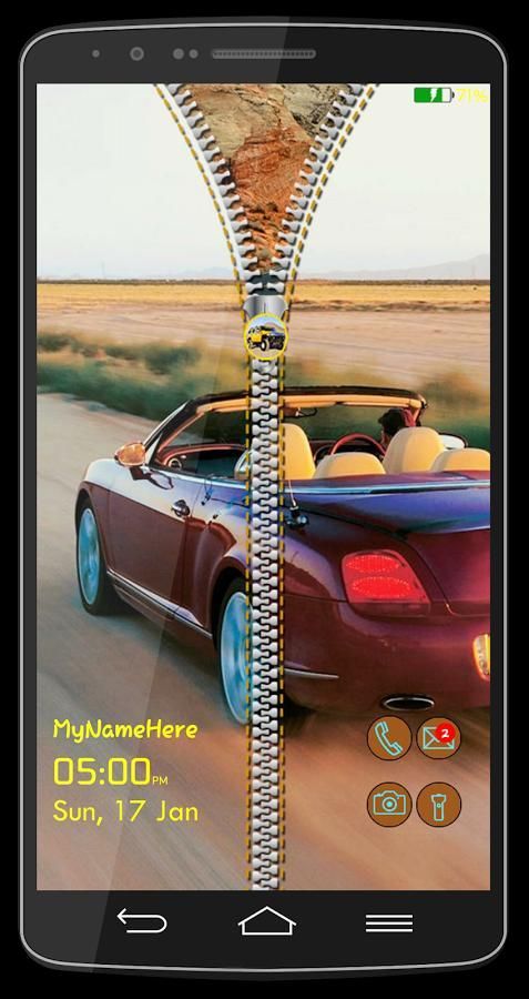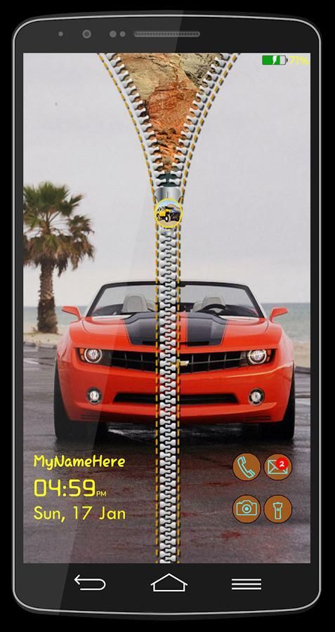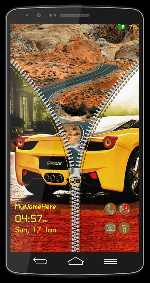 Cars Zipper Lock Screen is an amazing, quick, and simple with HD graphics. Car photo displays on your mobile lock screen when your phone is locked and you can unzip by drag it downwards to unzip the zipper and your phone will be unlocked. It comes automatically with smart and high quality zipper and beautiful wallpaper.