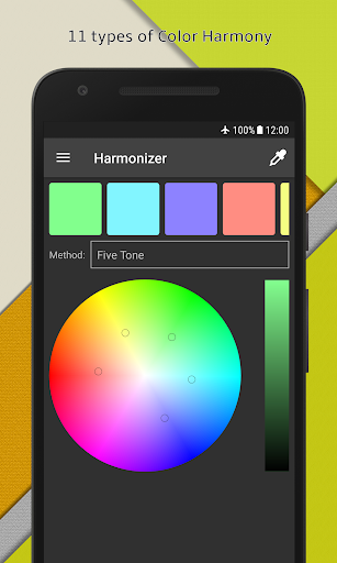 Color Harmonizer contains 11 types of harmony: Complementary, Split Complementary, Analogous, Analogous Accent, Triadic, Square, Tetradic , Tetradic-, Clash, Five Tone, Six Tone.