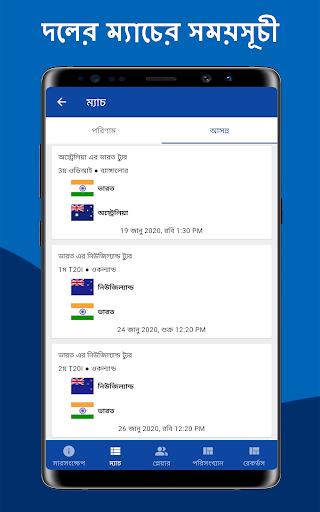 দল দ্বারা আসন্ন ম্যাচের সময়সূচী