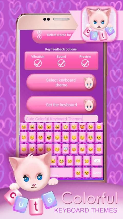 ❃ Our ✿ Cute Colorful Keyboard Themes ✿ is a smart keyboard app for Android that makes typing fast, easy and fun. Using emoticons and stickers is a popular way to express your emotions. When you are angry, an angry sticker can express more than a word could. When happy, a lot of different funny and cheerful emoticons can help you expressing that strong feeling! Our “colorful themes” are what you need!!! Sweet font colors, background images, cool effects are reasons why you should install the “best keyboards” for AndroidTM! The app function allows you to choose selfies and picture from the gallery as keyboard skins or use camera to take a photo and make it your own theme. The best emoticon keyboard themes ever are finally here!
