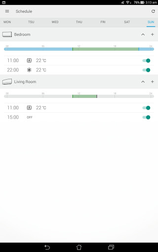 - 7 দিনের জন্য প্রতিদিন 6 টি কর্মের সাথে সেট তাপমাত্রা এবং অপারেশন মোডটি নির্ধারণ করুন