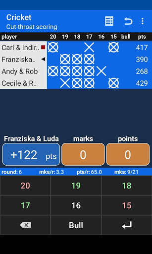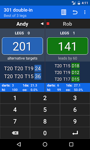 • 2-ডার্ট আউট-চার্টের উপর ভিত্তি করে বর্তমান স্কোর
