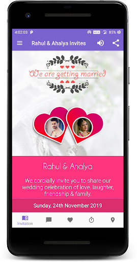 আপনি যদি এই অ্যাপ্লিকেশনে পৌঁছেছেন তবে আপনি সম্ভবত আপনার বিয়ের জন্য আপনার সম্পর্ক এবং বন্ধুদের আমন্ত্রণ জানাতে নতুন কিছু খুঁজছেন। আমরা বিবাহের দম্পতিতে এই সেবা প্রদানের জন্য বাজারে প্রথম।