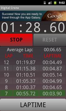 "Digital Crono" is an easy and simple stopwatch for Android devices.