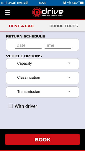 ড্রাইভের সাথে, আপনার গাড়িটি আপনার বন্ধ-ঘন্টা প্রয়োজনের জন্য দিনের যে কোনও সময় এবং সপ্তাহের যে কোনও দিন বিতরণ করা হবে।আপনার ড্রাইভিং প্রয়োজন suits যে ভাড়া জন্য সঠিক গাড়ি খুঁজুন।মেট্রো এবং চারপাশে জনপ্রিয় পর্যটন গন্তব্যস্থল পরিদর্শন করে ফিলিপাইনের সৌন্দর্যটি অন্বেষণ করুন।