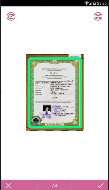 - Step 1: select the first page of the document you want to scan (from Camera or Gallery). then cut the area you want to scan and next (by clicking the V button in the lower right corner)