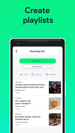 আপনার সমস্ত প্রিয় সামগ্রীর প্লেলিস্ট তৈরি করুন এবং তারপরে তাদের কথা শুনুন। আপনার ভ্রমণের দৈর্ঘ্যের উপর ভিত্তি করে নিবন্ধ বা নথি নির্বাচন করুন। কাজ করার জন্য আপনার পথে কিছু বিশেষজ্ঞ হয়ে উঠছে কল্পনা করুন!