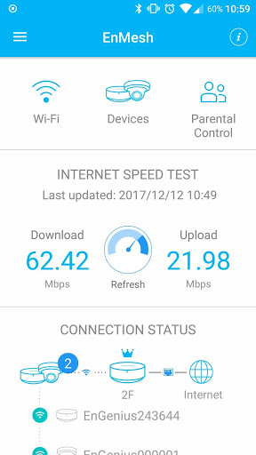 The EnMesh app helps you set up a mesh network and control your mesh devices from your smartphone. Keep your home Wi-Fi always running at full speed, full time. Everyone in your home can do stream, download, share and do all they love at the same time!