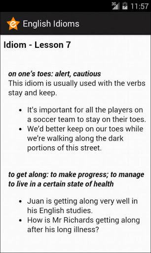 English Idioms is a helpful tool for those who study English. It has 30 lessons of idioms. You can learn to improve your English whenever you have spare time.