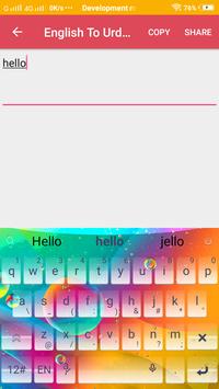 This is a English to Urdu writing app that can help you with all translation requirements. With the English to Urdu typing option provided in this application, all your conversion needs will be fulfilled. Using this English to Urdu type writer tool, you can easily convert the english text into your language.A lot of people are looking for English to Urdu dictionary that can be used to get the literal meanings of english words. You will find that after using this app, the English to Urdu conversion becomes easy. You can easily do English to Urdu translation by making use of the extended features of this application. This is an English to Urdu translation keyboard that you can use to your maximum effect.