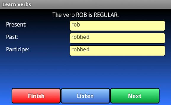 English Verbs helps you learning English verbs and their conjugation, both regulars and irregulars.