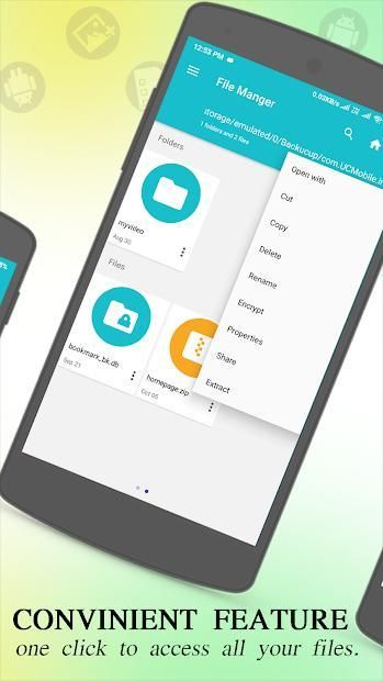Manage your files (file explorer) like you do on your desktop or laptop using Multiple Select, Cut/Copy/Paste, Move, Create, Delete, Rename, Search, Share, Send, Hide, Create Shortcut, and Bookmark;