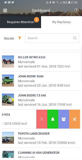 Farm Service Manager builds a full service and maintenance history for each machine or vehicle. When it comes time to sell the equipment you can easily export a PDF version of the service history, increasing the machine’s resale value because the buyer knows it has been looked after.