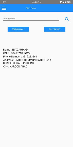This Data finder android app finds details of mobile phone number within Pakistan. These details include Location,