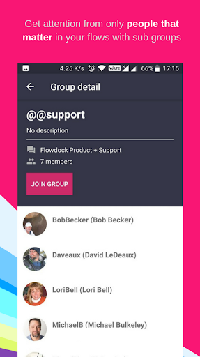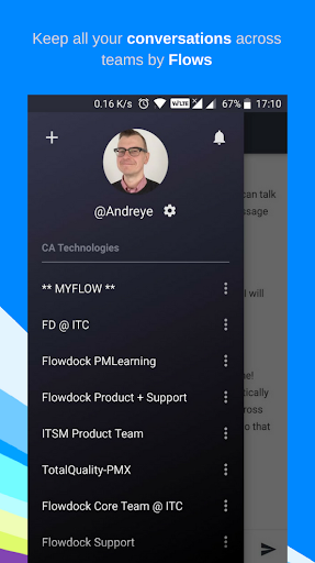 NOTE: To use the Flowdock app, you need to have a Flowdock account available at: http://www.flowdock.com