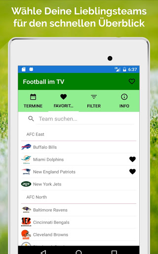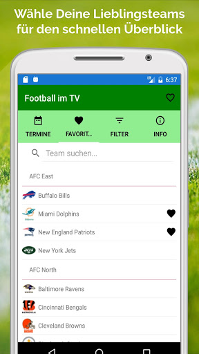 - Kegemaran. Tentukan kegemaran anda dari semua pasukan dan dapatkan gambaran keseluruhan permainan anda dengan hanya satu klik.