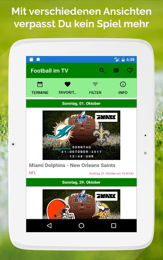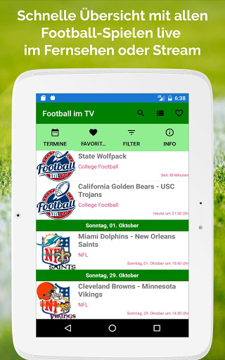 Adakah anda pernah terganggu kerana bola sepak ditayangkan di televisyen dan anda hanya menonton di tengah-tengah permainan? Itu tidak akan berlaku kepada anda dengan aplikasi ini lagi. Di sini anda akan menemui semua tarikh di mana bola sepak ditayangkan secara langsung di televisyen.