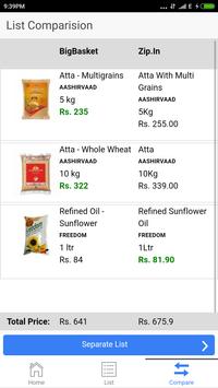 Try our new Grocery app to make your monthly grocer list and get the best price for your home needs websites like BigBasket and Zip.in.