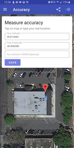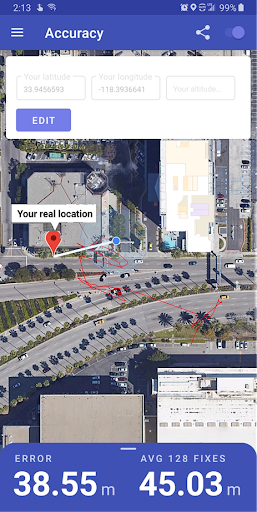 "নির্ভুলতা" বৈশিষ্ট্যটি আপনাকে আপনার ডিভাইসের অবস্থানে ত্রুটিটি পরিমাপ করতে দেয়। প্রকৃত * অবস্থান (আপনার দ্বারা প্রবেশ)। অন্যান্য অ্যাপ্লিকেশনগুলি আপনাকে * আনুমানিক * সঠিকতা প্রদর্শন করে, যা আপনার ডিভাইস দ্বারা উত্পন্ন হয়। GPSTEST আপনাকে এই আনুমানিক সঠিকতা * প্রকৃত * সঠিকতার সাথে তুলনা করতে দেয়!