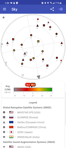 • Crowd-source device capabilities - Optionally contribute your device capabilities to the public GPSTest Device Database (https://bit.ly/gpstest-device-database) via the Share screen. See https://bit.ly/gpstest-database-article for details.