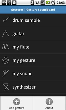 Gesture Soundboard allows you to play your sounds or audio files by drawing gestures on the screen. You can record your own sounds or select audio files from your SD Card and easily play various songs at the same time!