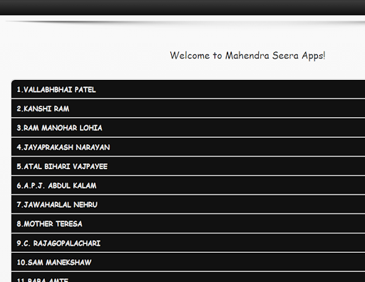 হ্যালো বন্ধুরা এই অ্যাপ্লিকেশনটি ভারতের মহান এবং বিখ্যাত জনগণের জীবনীকে দেওয়া হয়েছে। এই অ্যাপ্লিকেশনের সাথে আপনি ভারতের জনগণের সম্পর্কে আরও জানতে পারেন। এই অ্যাপ্লিকেশন সম্পূর্ণ বিনামূল্যে এবং অফলাইন।