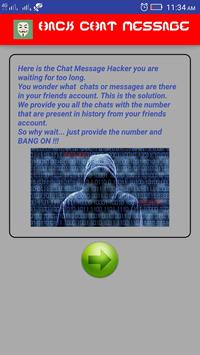 It is not possible to hack Chat Message data. It is unethical to hack and we do not support any hacking. Its just a fun app to show your friends.